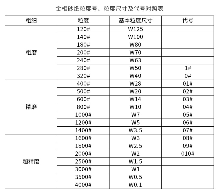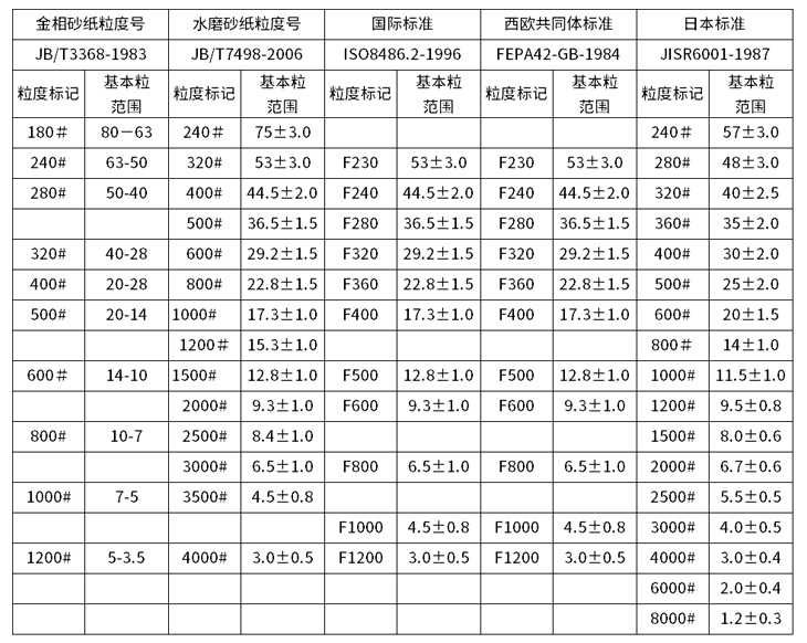 金相砂紙與水磨砂紙粒度對(duì)照表
